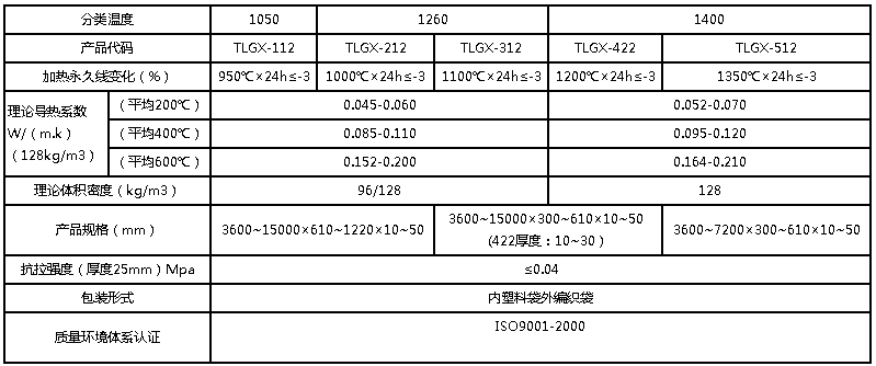 陶瓷纖維板性能指標: