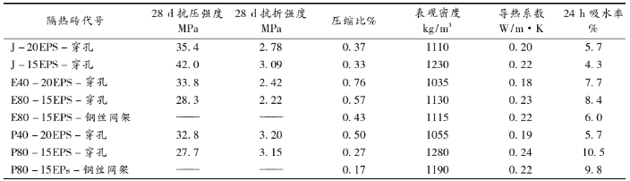 經(jīng)骨料混凝土種類和層間聯(lián)系方式改變時(shí),復(fù)合隔熱磚性能測試結(jié)果