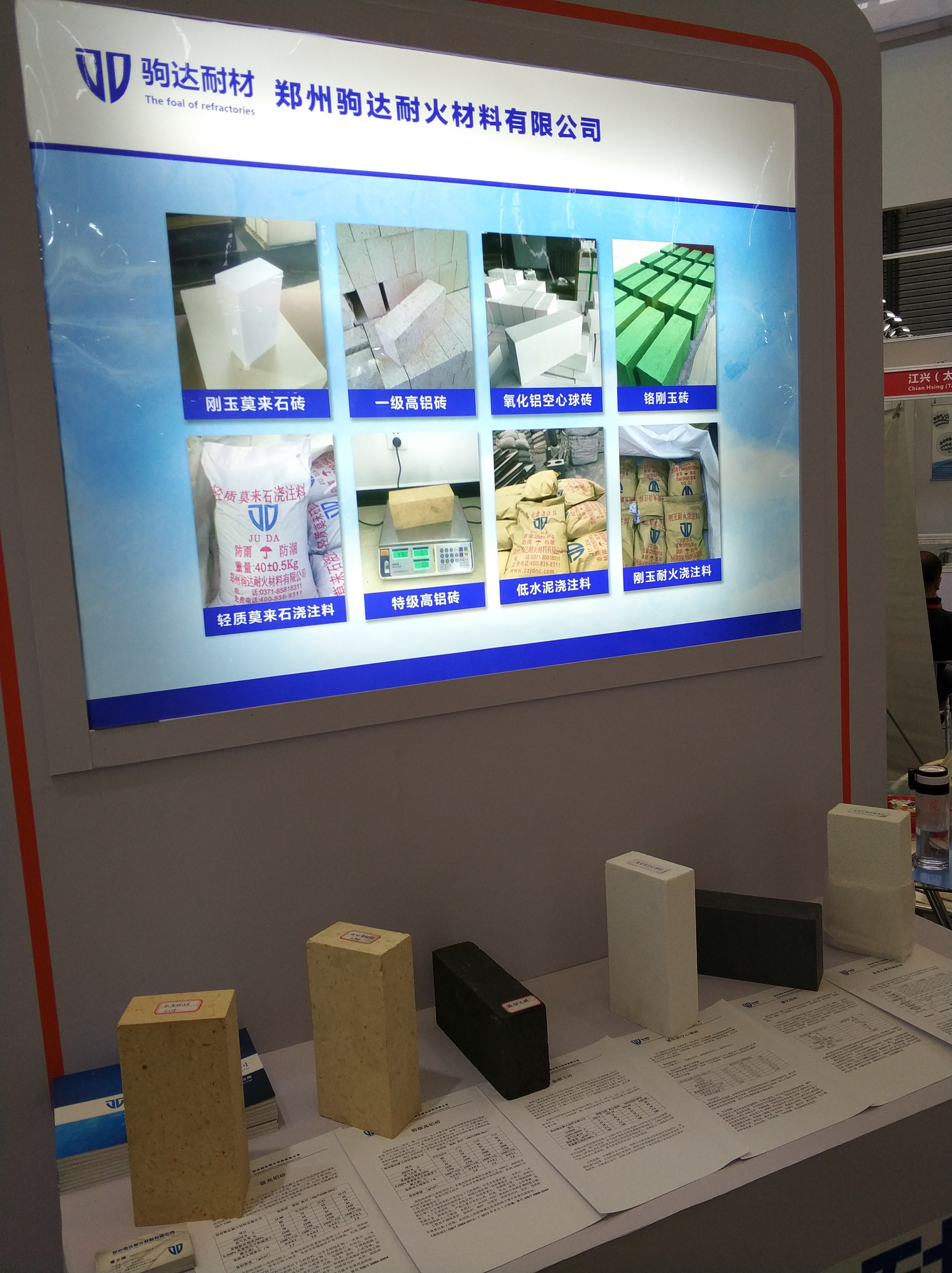 駒達耐材作為河南本地企業(yè)也是在參會當天帶去了我們的產品樣品其中包括:特級高鋁磚,鉻剛玉磚,氧化鋁空心球磚,碳化硅磚等具有河南傳統特色的產品。