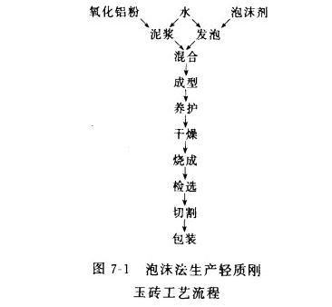 用泡沫法制作輕質剛玉磚的工藝流程見圖所示。