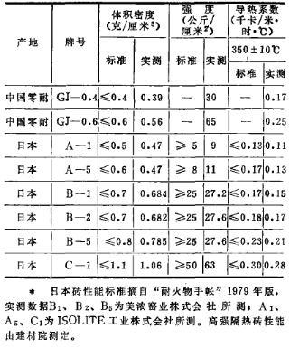 表一 高強隔熱磚與日本隔熱磚性能比較