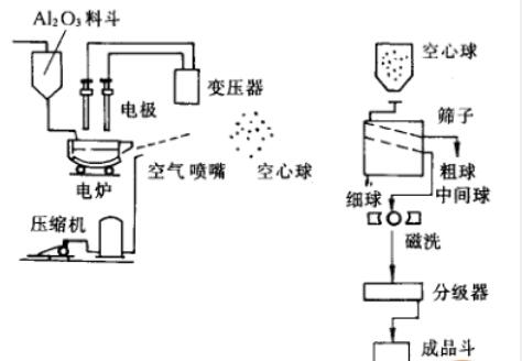氧化鋁空心球的制備方法有滾球燒失法和熔融噴吹法。滾球法是先用有機(jī)樹脂或低熔物做成芯丸,放在旋轉(zhuǎn)的圓盤里,再把含有一定水分的潮濕的氧化鋁細(xì)粉撒在盤中,粘附在芯丸上,形成一個外殼,宛如在藥丸外包裹一層糖衣一樣。然后把這種球丸放在高溫下燒成,其中的芯丸燒失揮發(fā)掉,而外殼達(dá)到燒結(jié),形成空心球。這種方法的缺點(diǎn)是效率低,球面不光滑,且壁厚及大小不易控制,因此工業(yè)生產(chǎn)中采用得不多。