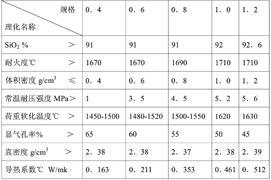 輕質(zhì)硅磚的理化指標(biāo)如下表: